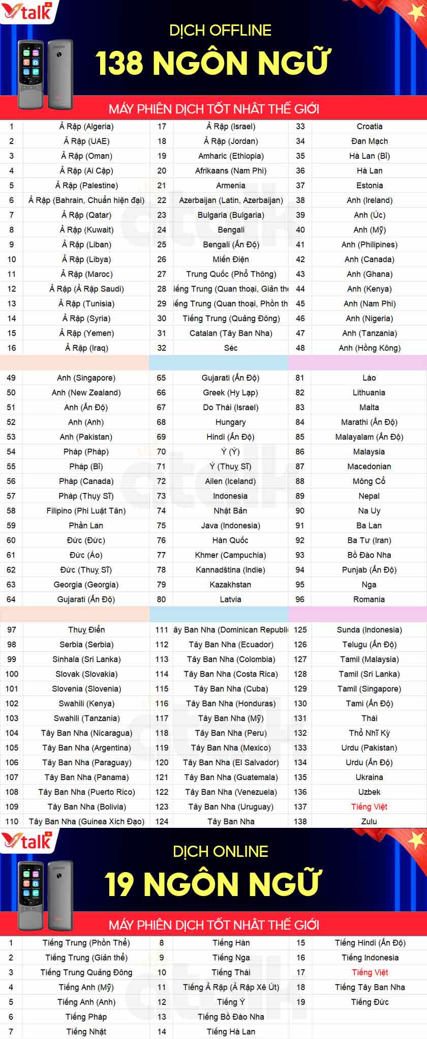 - Dịch giọng nói: Hỗ trợ 2 chiều lên tới 134 ngôn ngữ khi có kết nối mạng, bao phủ hầu hết các quốc gia và vùng lãnh thổ trên thế giới.