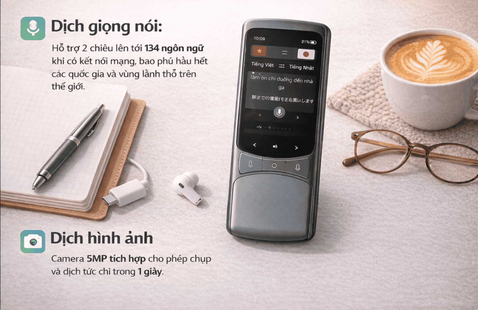 Máy phiên dịch Vtalk Go mang thương hiệu Việt Nam, Dịch Offline Có Tiếng Việt
