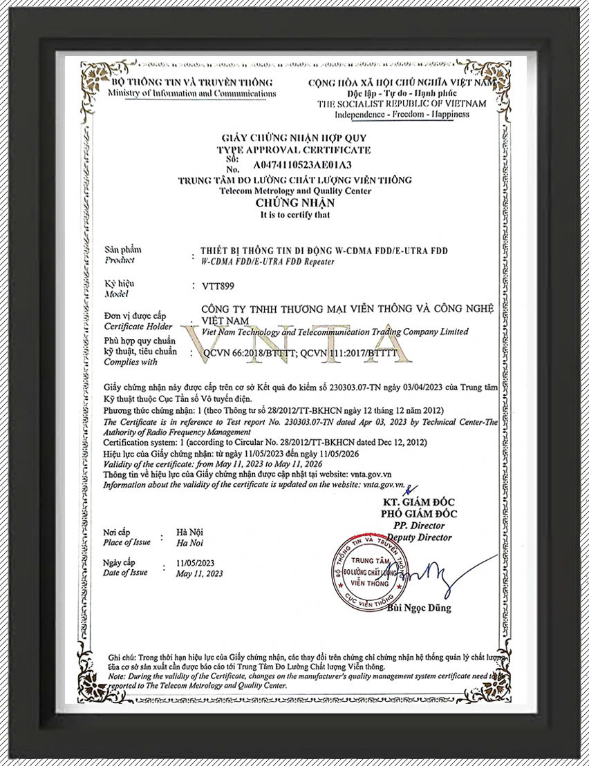 Vtalk đạt tiêu chuẩn chất lượng Châu Âu CE&RoSH và đã được cấp Giấy Chứng Nhận Hợp Quy bởi Bộ Thông Tin Và Truyền Thông.
