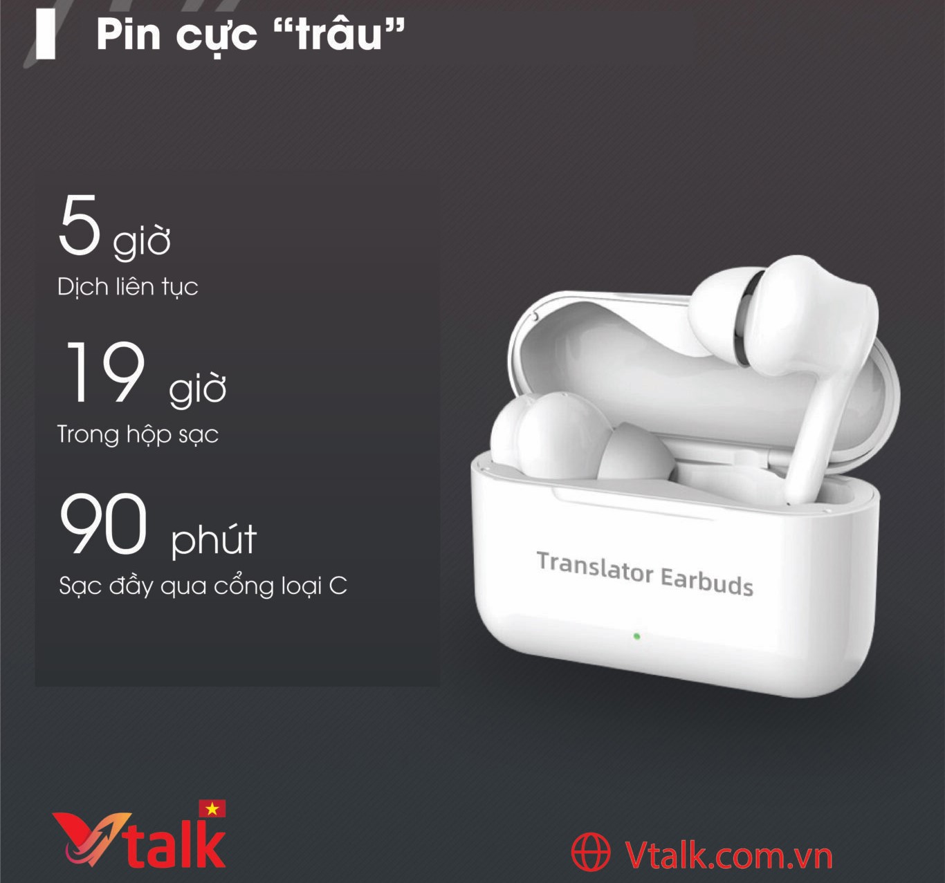 Thiết kế không dây tiện lợi, dịch thuật trực tiếp trong các cuộc trò chuyện, thời lượng pin dài.
