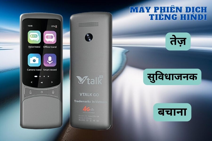 Vtalk Go không chỉ dịch được giọng nói mà còn dịch được hình ảnh sử dụng tiếng Hindi. Máy được tích hợp cả AI giúp dễ dàng nhận diện tiếng Hindi khi bạn du lịch Hindi.