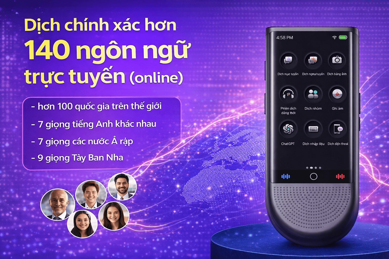 Máy phiên dịch Vtalk Pro S là thiết bị dịch thuật thông minh thế hệ mới, hỗ trợ dịch không cần nhấn giữ, giúp việc giao tiếp trở nên thuận tiện và tự nhiên hơn. Sản phẩm nổi bật với khả năng dịch 148 ngôn ngữ sang tiếng Việt, nhận diện giọng nói tự động và dịch offline không cần kết nối mạng. Ngoài ra, Vtalk Pro S còn tích hợp nhiều tính năng hiện đại như dịch nhóm, dịch qua điện thoại, phiên dịch đồng thời, dịch hình ảnh, ghi âm và hỗ trợ ChatGPT, đáp ứng đa dạng nhu cầu sử dụng trong học tập, công việc và du lịch.